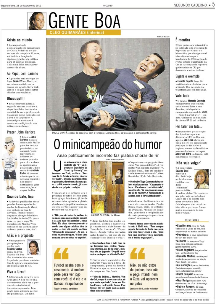 Reportagem sobre a eliminatória Sudeste II (etapa que fui vencedor) do Primeiro Campeonato Nacional de Standup Comedy.